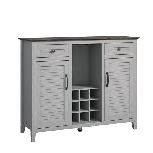 Scandinavian 47 In. Gray Wine Cabinet with Textured Patterns Door and Wooden Pattern Countertop