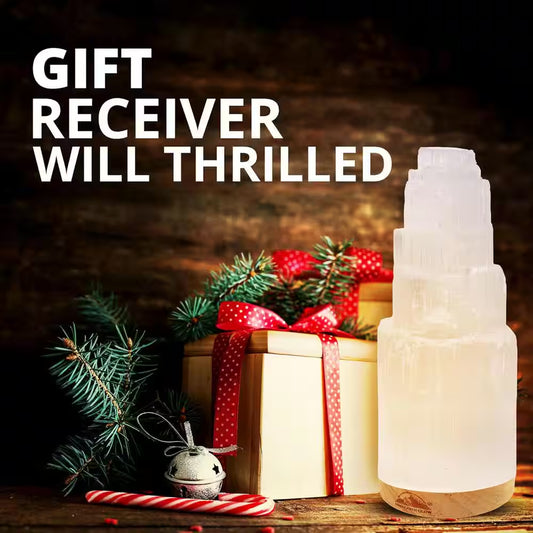 Selenite Crystal Healing and Calming Effects, High Spiritual Gift, Yoga and Meditation, 20 Cm Lamp with Wooden Base
