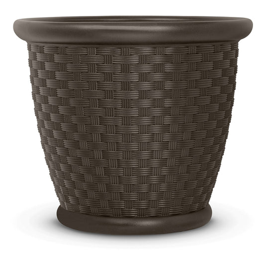 Sonora 18" Resin Wicker Style Yard & Garden Flower Planter, Brown