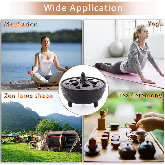 Vintage Tripod Cast Iron Incense Burner with Lotus Lid