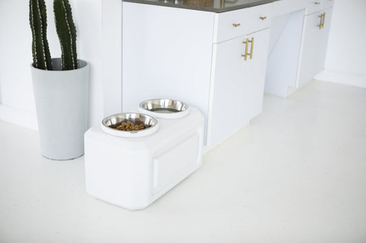 Vittles Vault 2-In-1 Elevated Stainless Steel Dog Bowls with 50 Lb Dry Food Storage, White