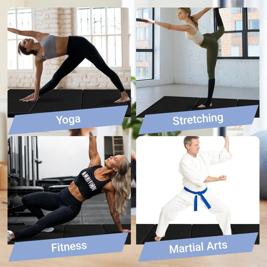 Versatile 4'X8'X2" High-Density Gym Mats - Extra Thick, Anti-Tear, Easy-Clean, Foldable for Aerobics, Yoga, Martial Arts, with Durable Vinyl and Velcro, Black
