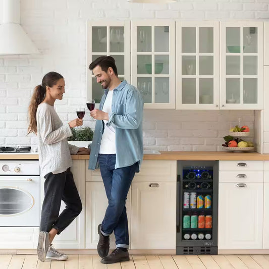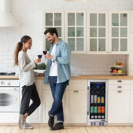 15 In. 30-Bottle 115 Can Wine Beverage Cooler Refrigerator Freestanding Built-In Fridge