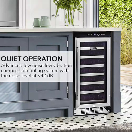 15 In. Built-In 30-Bottle Single Zone Wine Cooler Compressor
