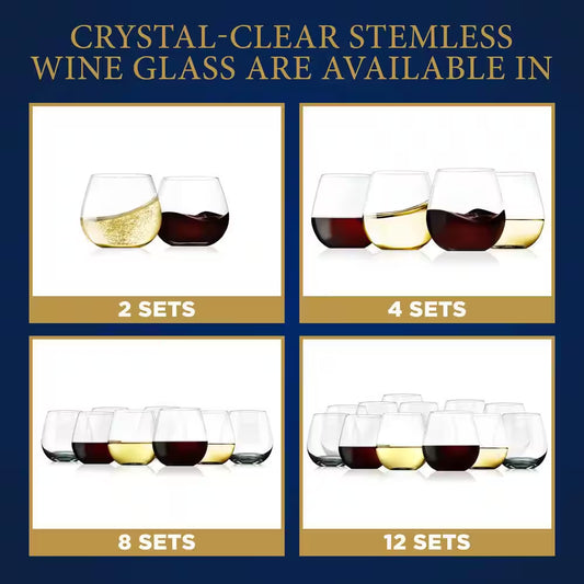 15 Oz. Crystal-Clear Stemless Wine Glass Set (Set of 8)