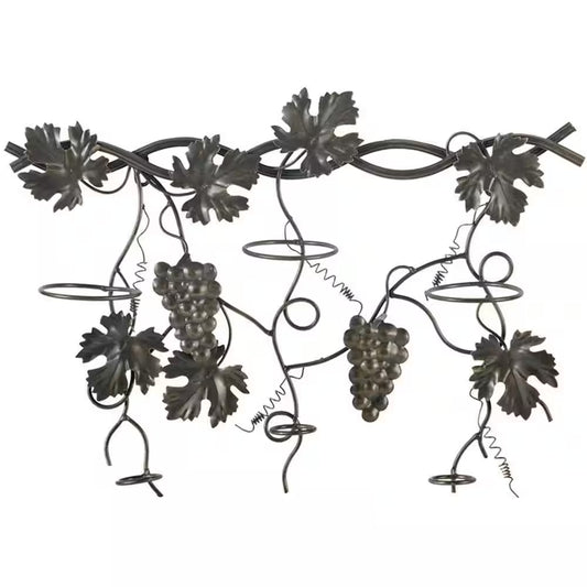 3-Bottle Black Metal Wall Hanging Wine Rack