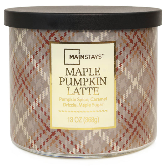 3-Wick Maple Pumpkin Latte Orange Plaid Design, 13-Ounce