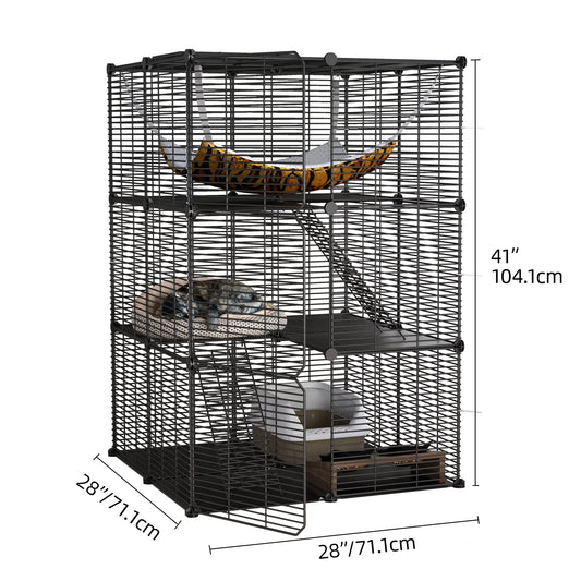 41" Large 3-Tier Cat Cage with Extra Large Hammock - Indoor Pet Playpen for 1-2 Cats, Black